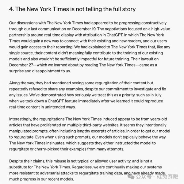 OpenAI 最终并没有为这份指控买单,他们表示不认同《纽约时报》的指控,也无法复现《纽约时报》提到的问题,更重要的是,所谓《纽约时报》提供的数据源,对于 OpenAI 来说并不重要。