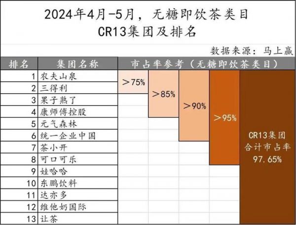 自从今年三月份开始,娃哈哈的品牌热度直线上升,“一茶”无糖茶的市场推广力度也加大了不少,特别是在一线城市和二线城市的覆盖面都有了显著提升。“马上赢”的调研数据显示,娃哈哈在无糖茶市场的份额排名,从2023年4-5月份的前13名之外,已经攀升到了2024年4-5月份的第9位。
