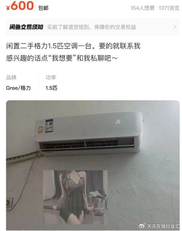 7月12日,网友张先生原本正在闲鱼平台寻找合适的二手空调,然后遇见一个号称提供“上门免费安装”、标价为数百元的卖家。此时,他发现卖家的描述非常模糊,并不像正常卖家一样标好了空调使用情况或者参数这些内容,反而是存在一些诱导人“想歪”的东西。