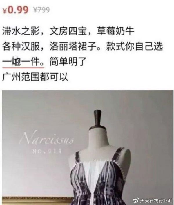 也有消费者投诉,反映其在浏览闲鱼网站时,发现有卖家“洛丽塔裙”幌子,疑似引诱女性进行性交易。据该消费者投诉,一位网名为“a510162727”的卖家,以0.99元销售“各种汉服,洛丽塔裙子”,并暗示“一pao一件,简单明了”,要求在“广州范围内”交易。