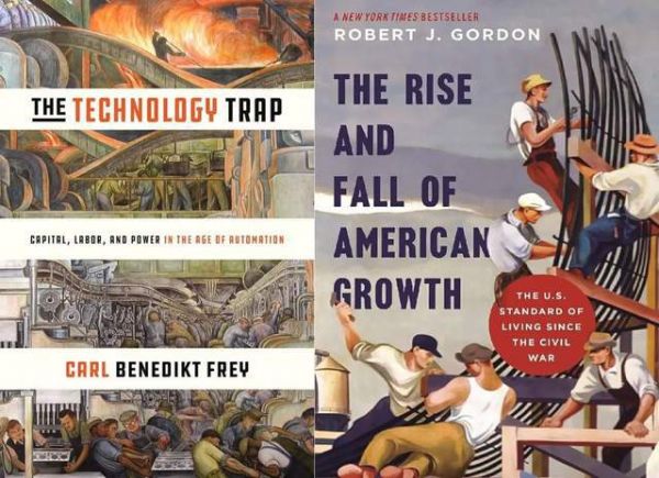 《技术陷阱》(The Technology Trap)和《美国增长的起落》(The Rise and Fall of American Growth)英文版封面。