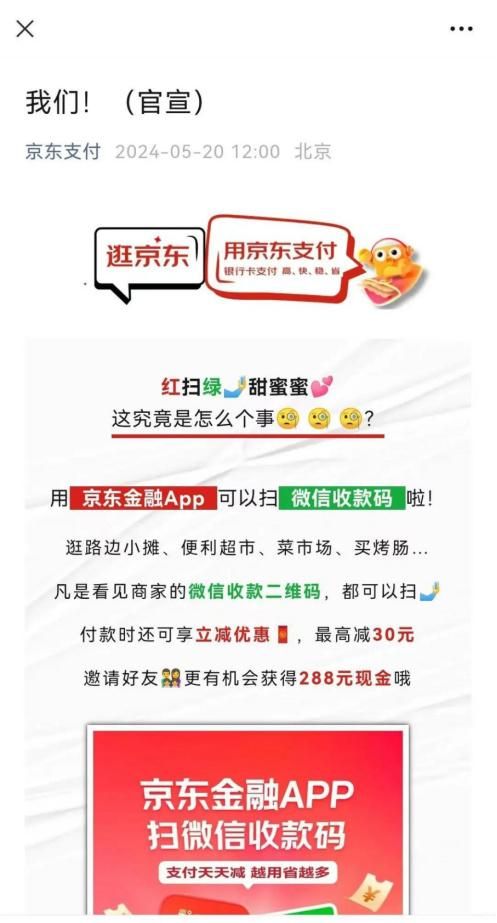 例如,5月,京东支付与微信支付实现互联互通,用户通过京东金融APP可以扫描微信收款二维码进行付款。
