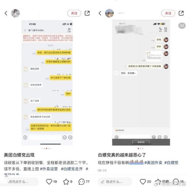 比如“白嫖党”会挑选一些刚刚上架美团外卖平台的新店铺“下手”,因为这类店铺没有好评积累,经营者也可能没有太多的行业经验,所以本着息事宁人的态度,大多情况下都会同意仅退款的申请。