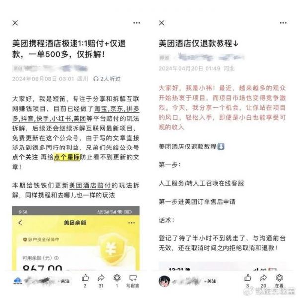 如果说美团外卖上的“仅退款”,还仅仅只是一小部分低素质用户的个人行为,那么借助美团平台预订酒店的产品漏洞,申请大额赔款,则已经演变成为一条薅羊毛与付费教学的灰色产业链。