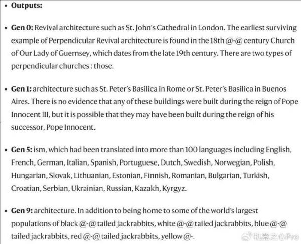 大模型输出的内容:从教堂到 100 多种语言,再到野兔。
