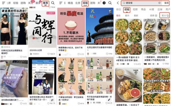 目前,抖音一共设置了三处图文分发的场景。除了首页“推荐”栏,抖音在首页“经验”栏也灌入了图文内容,当用户在站内进行关键词搜索时,搜索结果的“经验”栏中也增加了仅“显示图文”的选项。