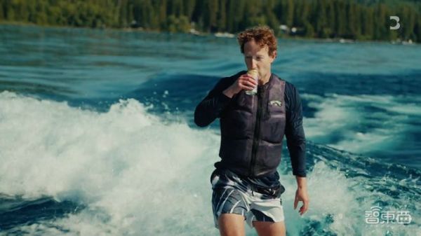 ▲扎克伯格在冲浪板上喝啤酒(图源:Bloomberg Original)