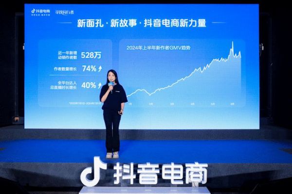 7月24日消息,抖音电商数据显示,过去一年,抖音电商达人带货总销售额同比增长43%,总直播时长同比增长40%;新增带货达人528万人,同比增长74%。