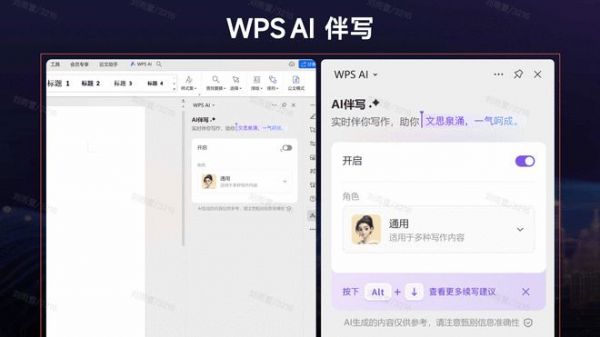 7月24日消息,金山办公宣布旗下人工智能应用WPS AI 全新上线“AI 伴写”功能。用户只需点击最新版WPS Office右上角的WPS AI选项卡,即可轻松启用“AI伴写”功能。