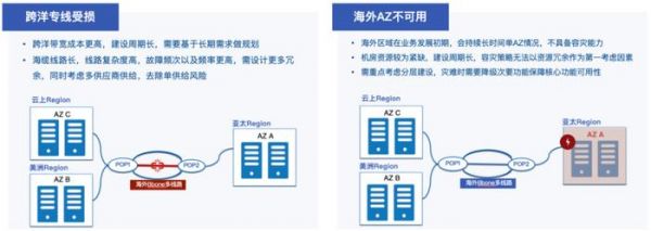 至于国内和海外容灾的差异性,国内可能会根据业务类型选择不同的异地多活部署模式。而海外可能会采用单元化的策略,比如按照国家维度进行部署。同时,我们在进行区域间流量切换时,也会考虑不同国家和地域的部署特点。