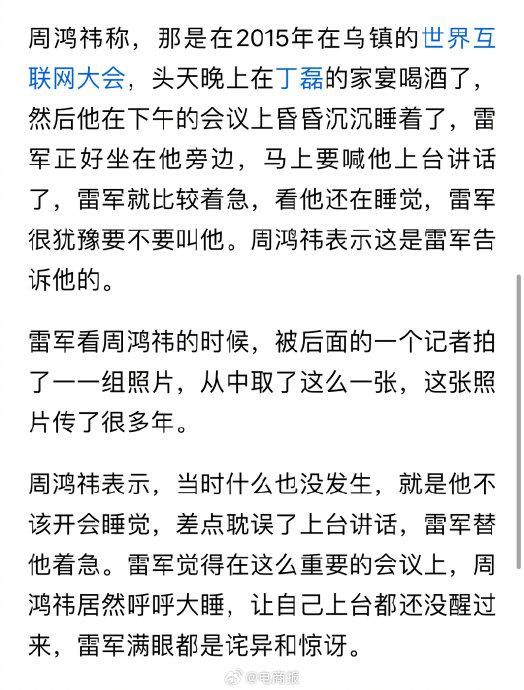 #周鸿祎回应睡觉被雷军瞪# 周鸿祎回应雷军眼神杀:当时该上台讲话了还在睡,雷军替我着急。