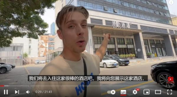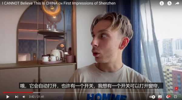 前两天起猛了,玩手机的时候刷到一条老外发的旅游Vlog,配的文案是:西班牙小哥奥利弗被深圳科技感十足的酒店震惊。