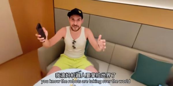 也有个叫阿里的德国人和奥利弗一样“没见过世面”,对酒店机器人送餐服务惊得下巴都要掉了,“我滴妈,机器人要掌控世界了!”