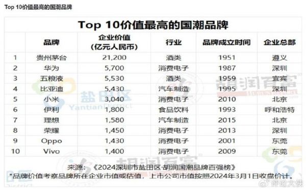 2024年7月,胡润研究院联合深圳市盐田区发布了《2024深圳市盐田区·胡润国潮品牌百强榜》,这一榜单不仅展示了中国品牌的实力与影响力,也揭示了“国潮”背后的深层含义及其未来的方向。