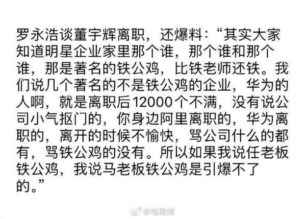 罗永浩为什么不说任正非、马云铁公鸡?坦言:从华为、阿里离职的员工没有说公司抠门的。