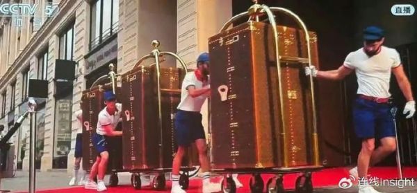 盛放火炬的LV行李箱,图源巴黎奥运会开幕式直播截图