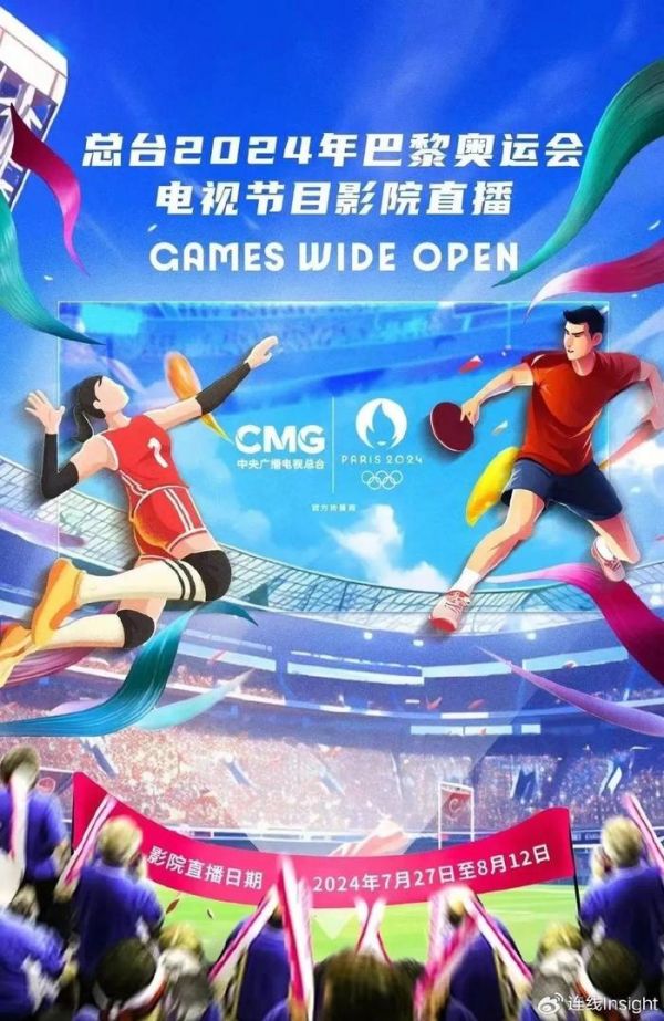 根据中影发行公众号消息,自北京时间7月27日起,全国范围内符合直播放映条件的数百家影城将进行总台2024年巴黎奥运会电视节目影院直播。