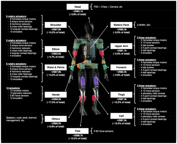 ▲图:擎天柱机器人零部件成本拆解,Morgan Stanley