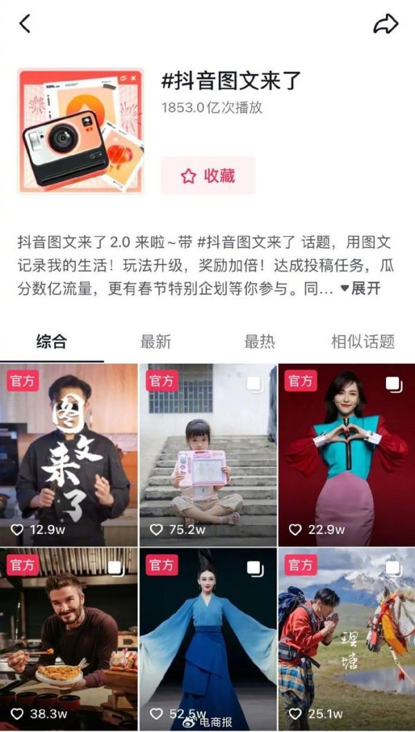 “抖音图文来了”、“图文伙伴计划”等活动 图源:抖音