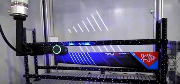 速力复合材料工厂内,技术人员用3D扫描检验设备进行质检,为产品高精度生产提供保障。