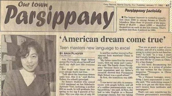 1992年,李飞飞刚满15岁,她与她的母亲,从中国飞往美国新泽西州,与已经去美国工作了两年的父亲会面,他们将在一个叫帕西帕尼的小镇上开始移民生活。