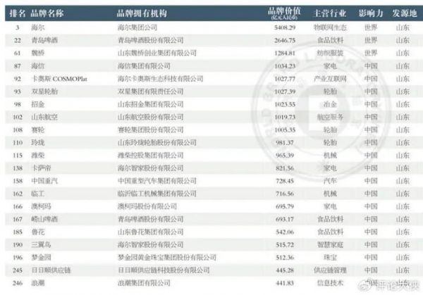 跻身“中国500最具价值品牌排行榜”的山东品牌