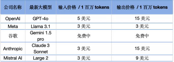 用低价“围剿”OpenAI已成大模型公司们的惯例。公开信息显示,与GPT-4o相比较,各大公司的最新发布的产品分别是:Meta的Llama 3.1,谷歌的Gemini 1.5 pro,Claude 3 Sonnet,新近的Mistral AI,这些最新大模型价格均低于GPT-4o。