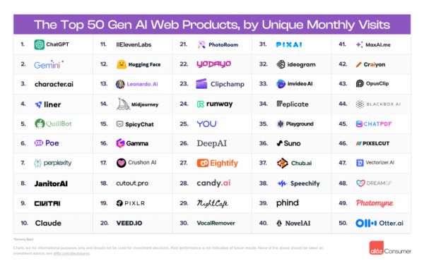 AI应用迭代快,却生命周期短。在之前提到的那份a16z榜单,比上一次统计榜单时间过去了半年,Top50里换了40%的新面孔。QuestMobile指出,国内生成式AI应用活跃率均在20%以下、三日留存均在50%以下、部分app的卸载率在50%以上。