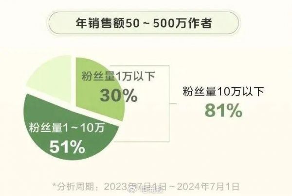 《报告》显示,过去一年,抖音电商新增带货达人528万人,同比增长74%。其中,年销售额50万元至500万元的带货达人中,粉丝量1万人以下的达人占比为30%,粉丝量1万至10万人的占比为51%。