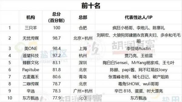 根据2024年胡润中国流量新势力百强榜的最新数据,小杨哥所在的三只羊位居榜首,是我国最具价值的流量新势力直播机构之一。