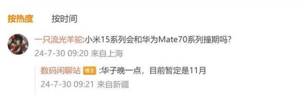 另外就是发布时间了,博主数码闲聊站爆料,华为Mate 70发布时间是11月份,晚于小米15、iPhone 16系列,喜欢的朋友要多等等了。