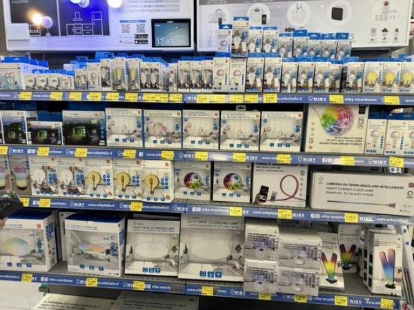 罗马的一家华商超市出售各种智能灯具。