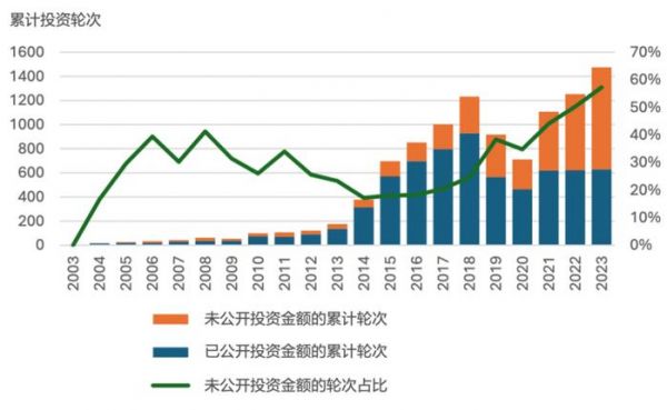 从2019年到2023年,半导体行业的投资无论是在融资轮数还是披露的总金额上都实现了显著增长。面对自2020年起更加受限的芯片及其制造设备的获取渠道,中国正致力于增强自身竞争力,减少对西方国家的依赖。本文所估计的增长可能只是冰山一角,因为自2019年以来,超过一半的投资额并未公开。