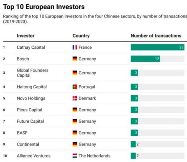 ▲ 欧洲对华科技投资机构Top 10(二)德国:欧洲对华投资的绝对主力