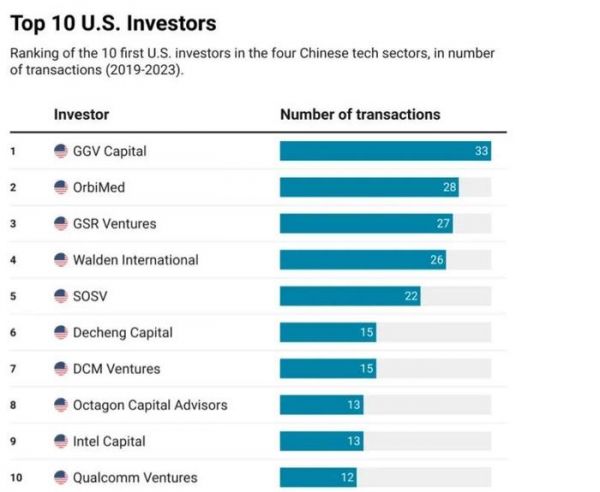 在中国科技领域的顶尖美国投资者中,包括纪源资本、金沙江创投和华登国际在内的大型风险投资集团,对中国科技进步的贡献已经引起了美国政治家和研究人员的关注。风投基金的活跃度超过了英特尔或高通等大型企业的风投子公司。