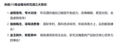听花酒的营销幻术,在央视315晚会的聚光灯下无处遁形,终究难逃被揭穿的命运。