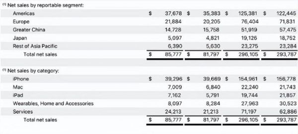 iPhone营收之所以下降,跟国内iPhone销量不佳有关,根据苹果分享,大中华区净销售额同比下降6.54%,从157.6亿美元降至147.3亿美元,成为唯一营收下滑的地区。