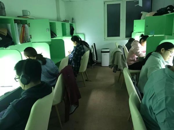 通过房间颜色、光线以及各类基础设施的布置,可以打造出一个“沉浸式”的学习空间。部分自习室为了让人能够专注学习,甚至采用黑屋模式。来自习室学的人大多具有提升自我的要求,但缺乏一定的自律,自习室能营造一种“一起奋战”的感觉,通过“他律”式的监督,提升学习效率。