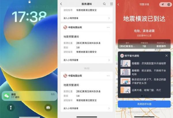 5级以下地震的预警效果:消息推送提醒+静默报警+避险指南。