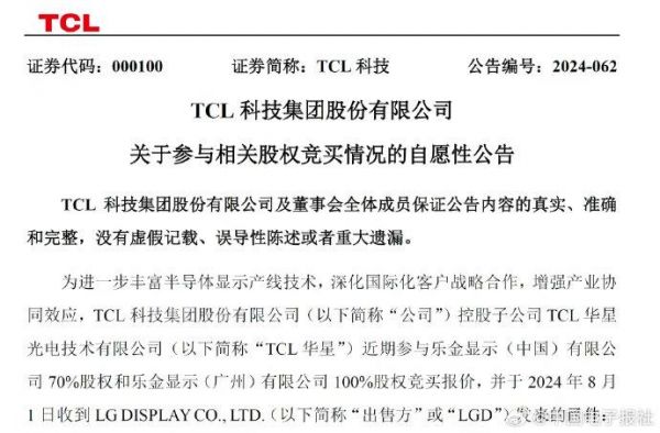 经历了与创维、TCL华星、京东方以及兆驰等谈判磋商,传闻长达一年多的LGD广州第8.5代LCD工厂(以下简称“LGD广州工厂”)出售案终于有了进一步消息。昨晚,LGD和TCL科技纷纷发布公告称,TCL华星成为LGD广州工厂股权的优先竞买方。
