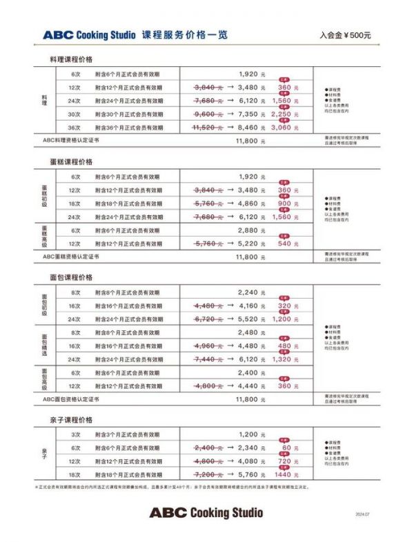 据了解,ABC门店主要提供烘焙、料理等各式烹饪课程,主营收入则来自于会员的课程费,单次课程收费200-500元左右。