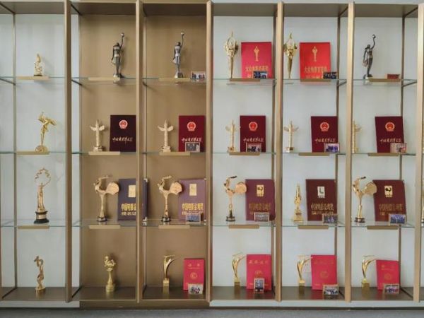 三里屯博纳大厦17层的接待大厅里,一整面墙的四五十个奖杯、奖状,也见证了博纳影业创立25周年以来的荣光。
