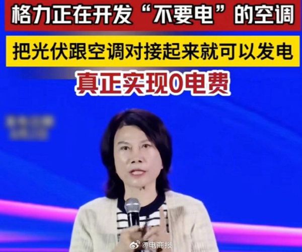 董明珠透露格力正在开发“不要电”的空调,真正实现0电费