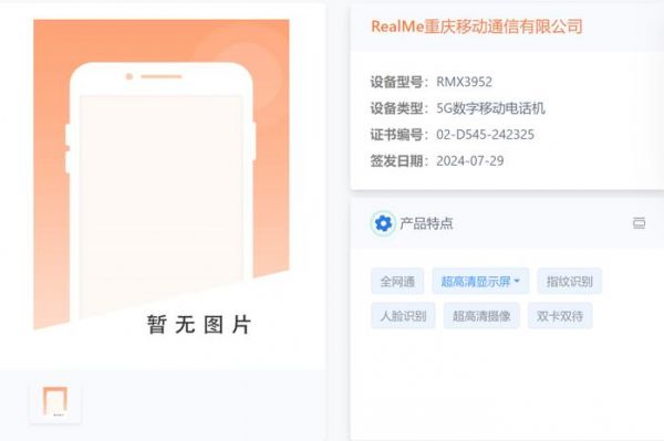 日前,一款型号为RMX3952的新机现身电信设备终端网并公布了主要参数,预计为真我13系列手机。