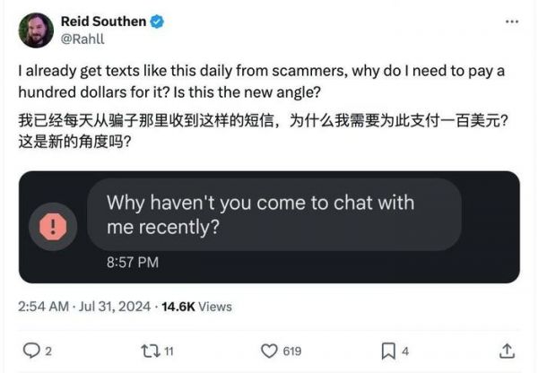 更有网友锐评:我每天已经接到各种诈骗询问我过得好不好,AI真的在乎我是否孤独吗?