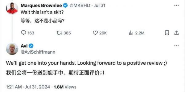 Marques现身评论区,艾夫曼直接表示,“送你一个,期待看到你的评价。”