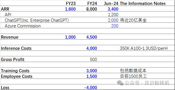 所以推导出OpenAI今年的亏损将在45亿-40亿-30亿-15亿美金=-40亿美金。
