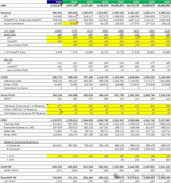 在4Q24,如果OpenAI的全年收入达到45亿美金,那4Q24的营收将约为18亿美金。假设其中当时的毛利率还在40%左右,那大概对应的推理成本就是10亿美金,如果是这样的推理逻辑那Inference Costs所对应的40亿美金就是年底Runrate收入的概念(4季度成本*4),而不是24年全年成本40亿美金。也与我们在微软Preview中的假设一致。