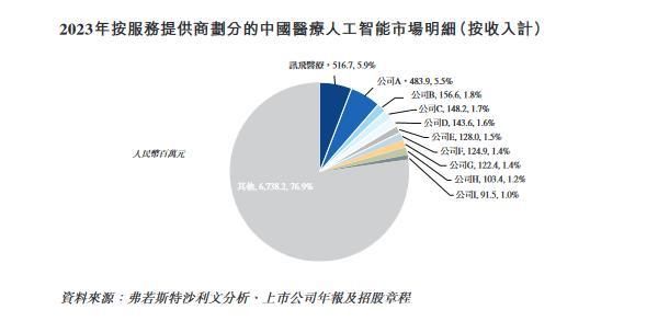 根据弗若斯特沙利文的资料,讯飞医疗 2023 年的收入规模在中国医疗人工智能行业中排名第一,市场份额为 5.9%。