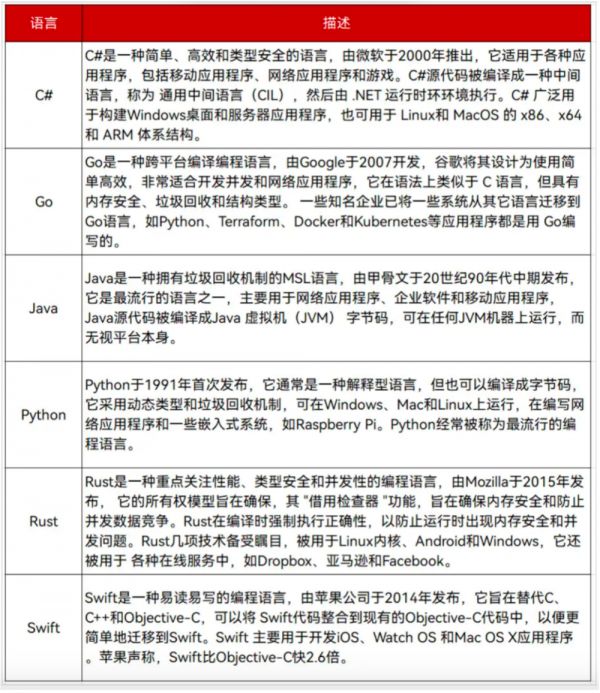 即便厂商已经投入大量心力避免漏洞,但结果依然似乎不容乐观,这些也就是导致机构驳斥C/C++的根本原因,而这些机构则更推荐使用C#、Rust、Go、Java、Python和Swift等几个编程语言,尤其是Rust。
